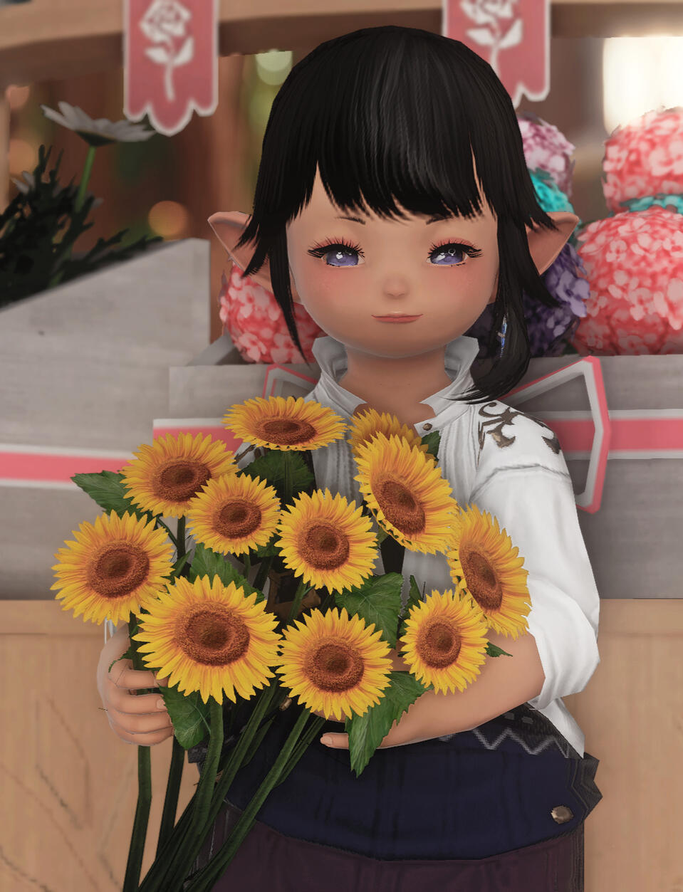 ㅤbackground:ㅤ As far back as I can remember, my passion for flowers has always been present. As a young girl, I would venture into the forests of the Shroud, collecting samples, creating sketches, and studying the unique qualities of each petal. As I matured, I realized that there was only one profession that truly captured my interest: Botany. I have dedicated my life to growing, researching, and studying the diverse flora found throughout Eorzea. Now, working at the Nook and Nectar provides me with the opportunity to share my love and passion with our guests. Whether it's helping you celebrate special occasions or expressing gratitude to a loved one or friend, I am honored to be a part of making those moments memorable.